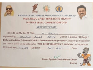 - S.Maheswari received a grant of Rs.40,000 for the project titled “ Neo wheels: A smart wheelchair”.